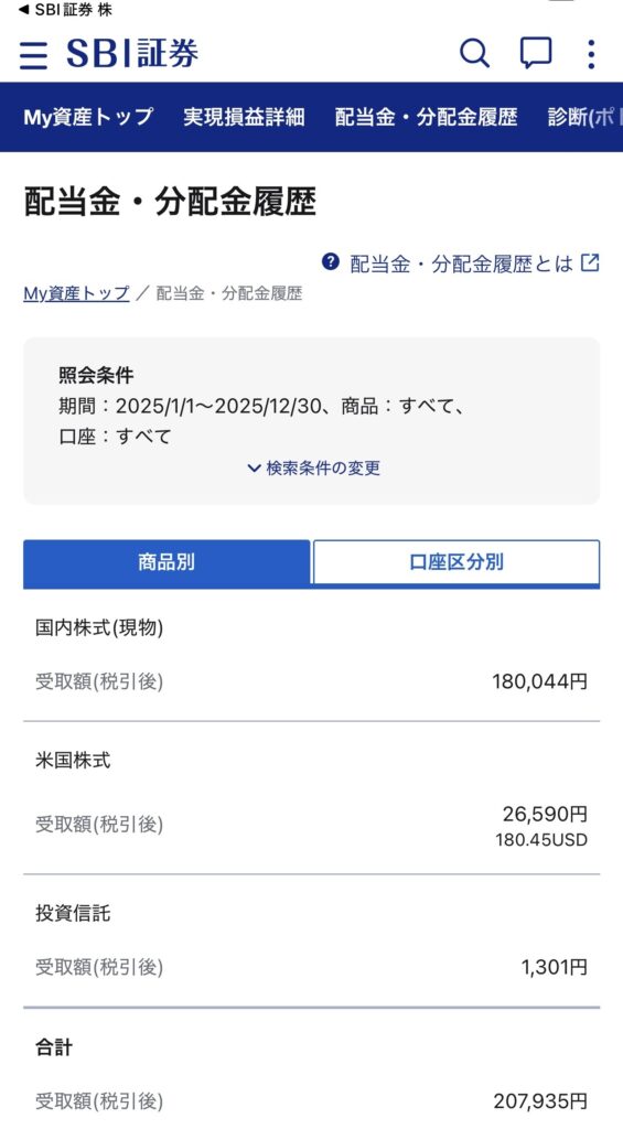 | SBI証券( 配当金) | 164,038円 | 207,935円 | +43,897円 |