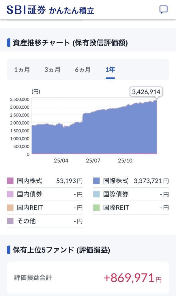 投資信託については、トータルの評価では上記となりますが、2025年では約35万円になります。