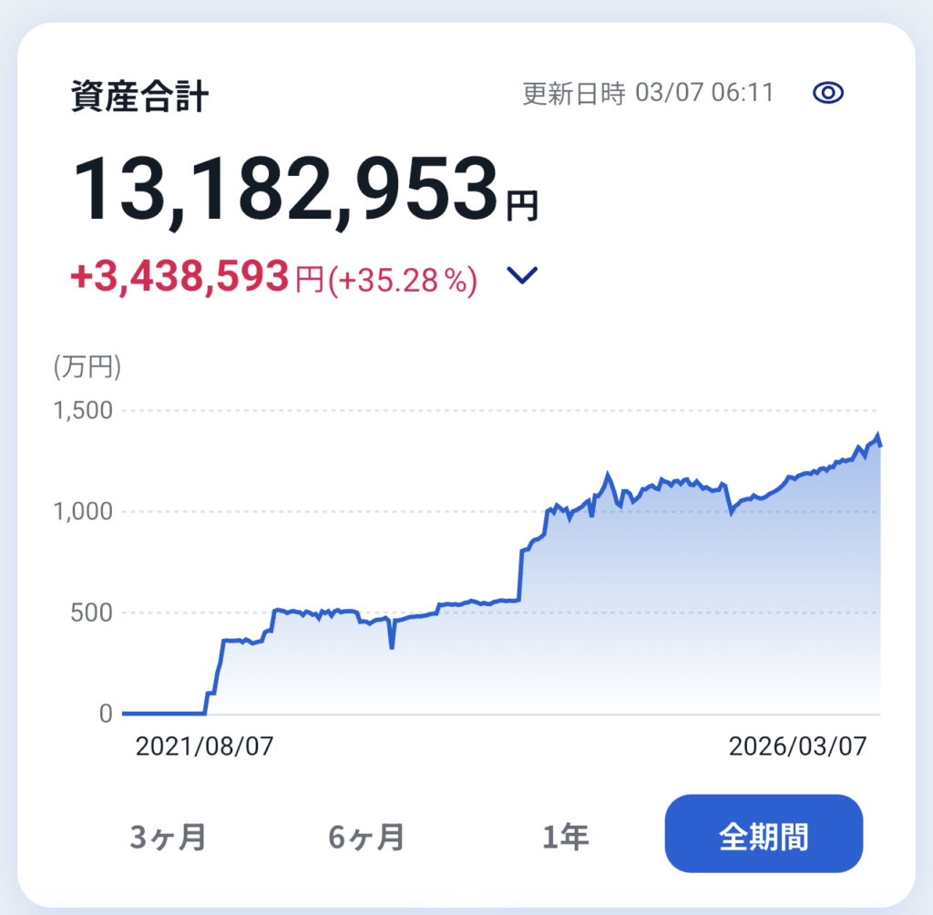2021年から徐々に個別株等に投資して、現在1,300万円程度になっています。