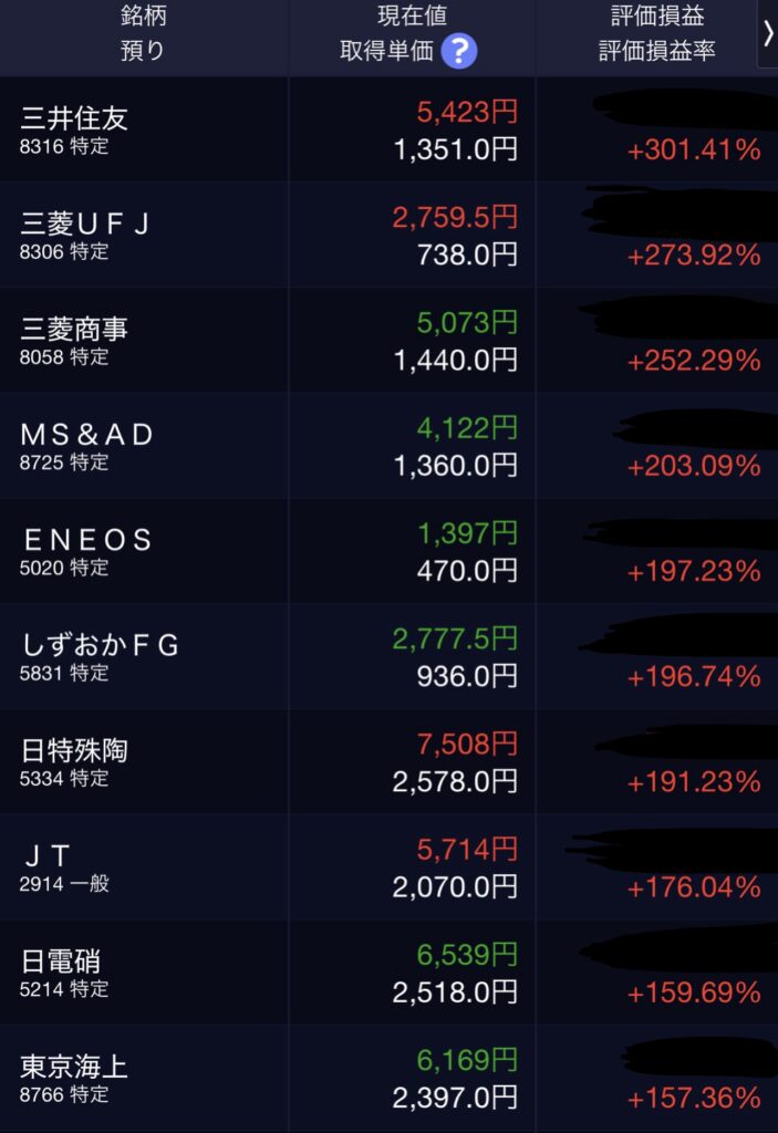 私の持っている個別株のパフォーマンスはこんな感じです。