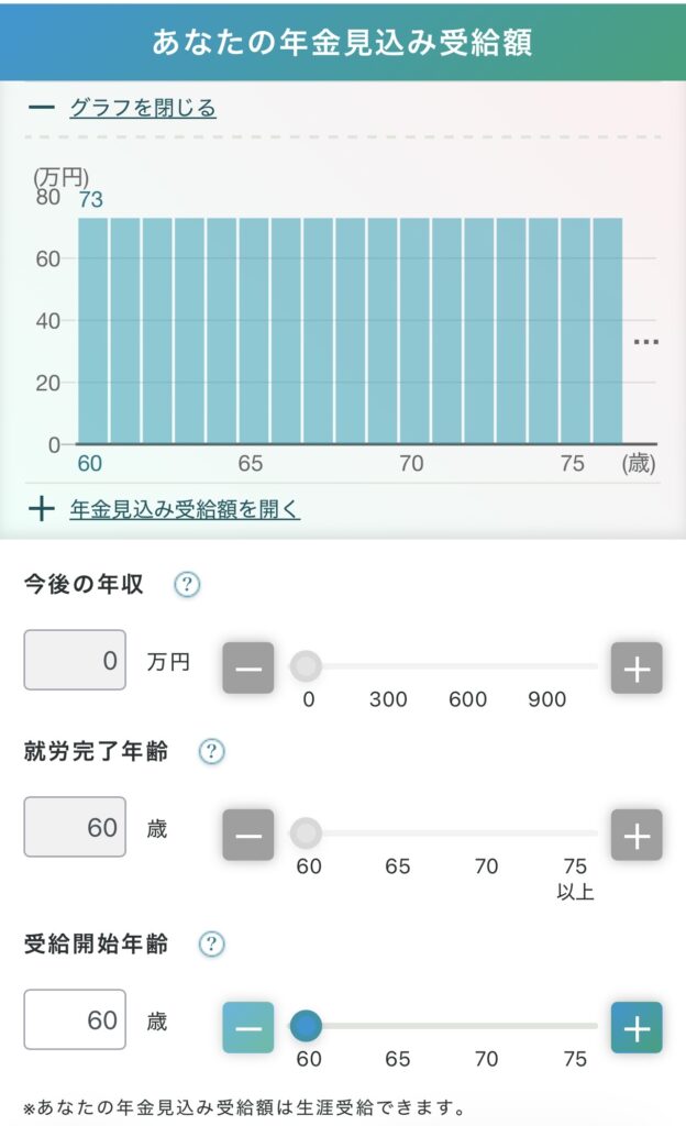年金受給「有り」と「無し」でシミュレーションしたいと思います。
